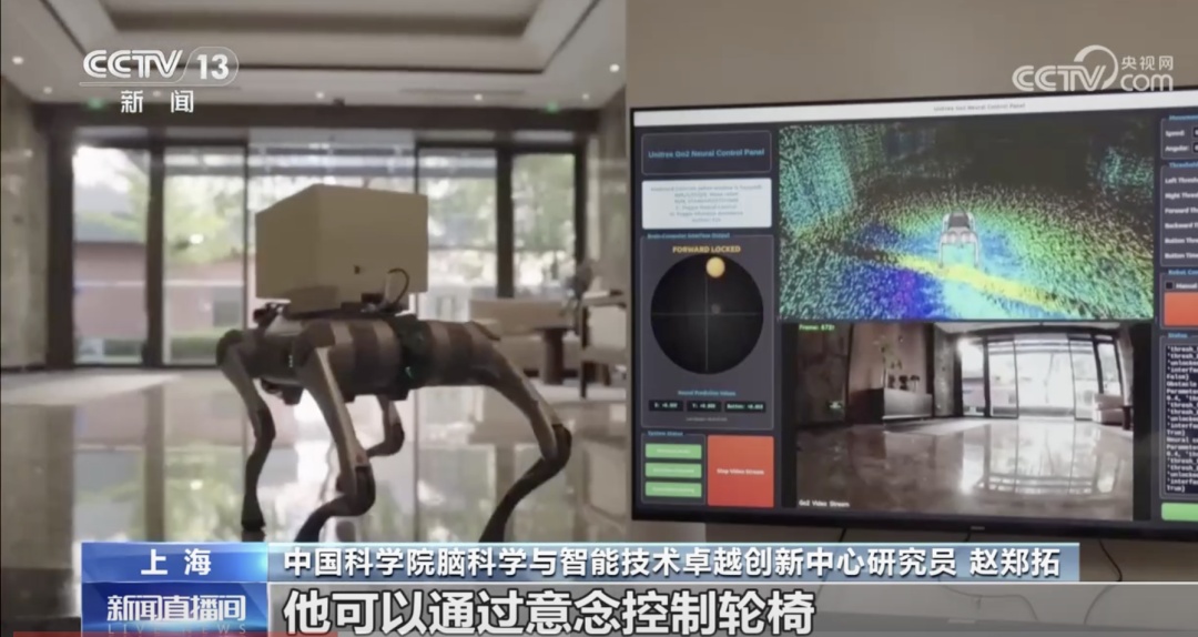 中国科学院脑科学与智能技术卓越中心研究员赵正拓表示患者可以用机器狗作为身体的延伸,用意念控制它下楼取快递,控制轮椅下楼等等,极大地丰富了他的生活。