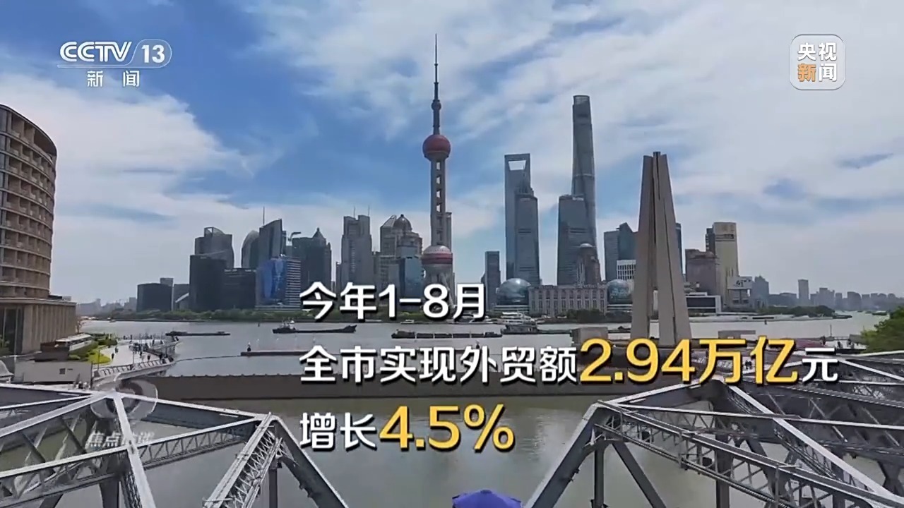 面对外部不确定性,上海积极培育外贸新动能,贸易竞争力持续发展。上海货物进出口总额连续四年超过4万亿元。今年1-8月出口增长11.6%;出口8月份,对非洲、东盟、中东等新兴市场的进出口额达到537.4亿元,同比增长45%。电动汽车、锂电池、光伏产品出口“三新”分别占NAD的37.1%、112.1%和39%,正成为外贸增长的新机器。