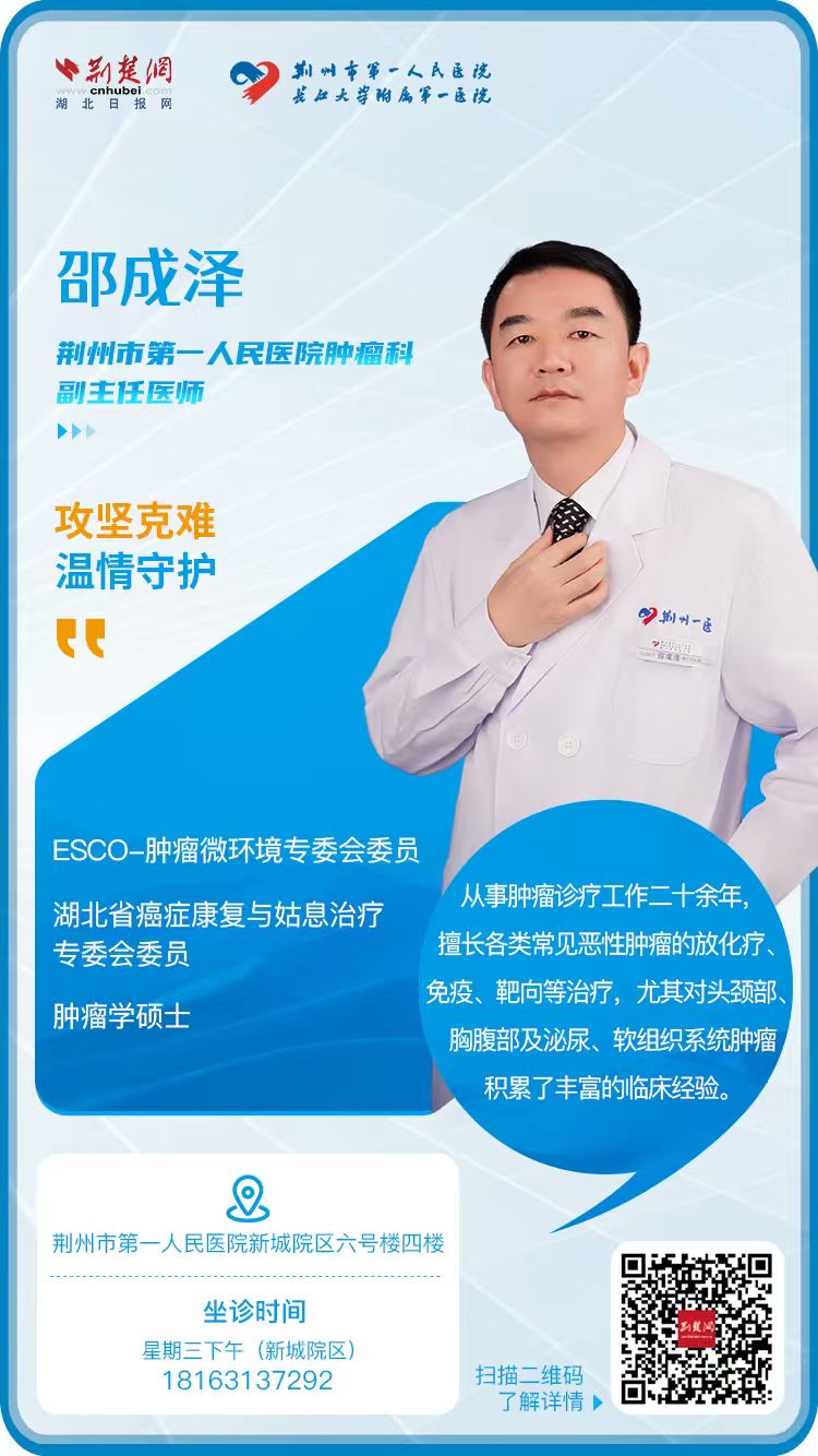 邵承泽:副主任医师,ESCO-肿瘤微环境专委会委员,湖北省肿瘤康复与姑息治疗专委会委员,肿瘤学硕士,从事肿瘤诊治工作20余年。