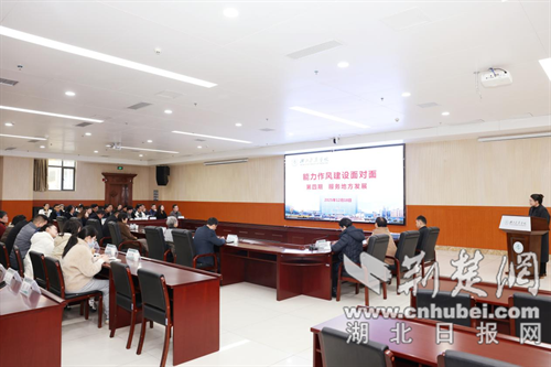 荆楚网(湖北日报)(通讯员:郑雨辰、黄松和)“科研成果转化如何在地方更具针对性?人才培养如何满足区域需求?” 12月18日,湖北医科大学科教楼一楼多功能厅内气氛热烈。第四阶段“面对面能力作风建设”活动围绕“助力地方发展”主题,进行了一场务实高效、直击痛点的“作风考验”。党委书记郑丹峰,党委常委、宣传部部长陈建龙,能力作风建设办公室成员、评委委员、教师代表等50人齐聚现场,共同维护学校能力作风提质增效,提升地方服务水平。通过“零距离”政治。