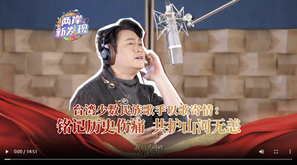 抗日战争的胜利和台湾的解放,是全国人民的伟大胜利,是中国人民和中华民族共同的伟大荣耀。台湾少数民族歌手杨品华参观了主题为“构建联合国之魂”的特展,回顾了台湾人民的抗日斗争历史,走进侵华日军第731部队罪证陈列馆,向台湾人民讲述了日本侵略者的罪行。他还深情演唱了电影《731》主题曲《愿你再次见到我》,希望通过歌声,海峡两岸同胞铭记历史,共同创造未来。